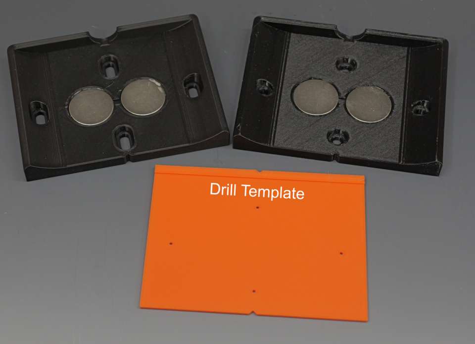 These can be mounted to walls or peg board. Hardware not included, but you just need 2x #8ish round head screws. All holes can be used for mounting on peg board (1/4″ c-c) or to the wall. also 2 vertical holes for mounting to stud.
